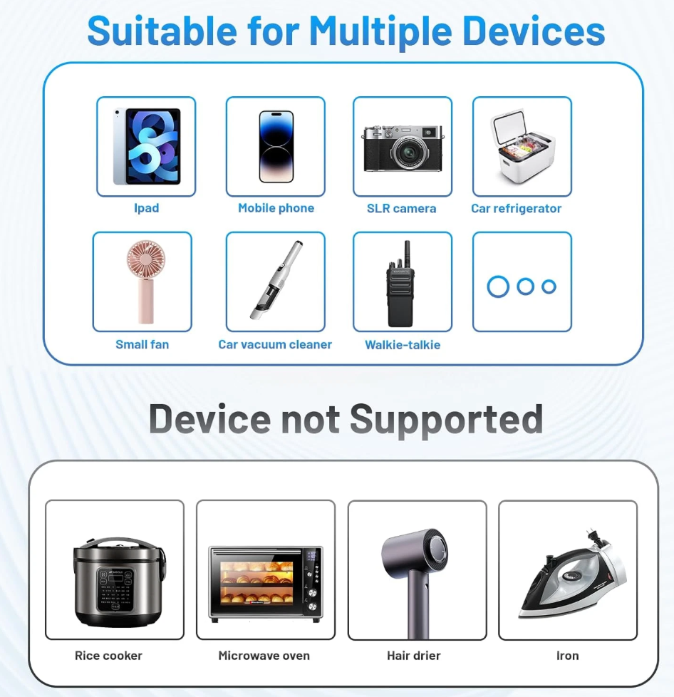 - [INTELLIGENT AND FAST CHARGING] The car power inverter features intelligent fast charging capabilities, allowing for quick and efficient charging of small electronic devices such as smartphones, flashlights, headlights, GPS devices,cams, and tablets.